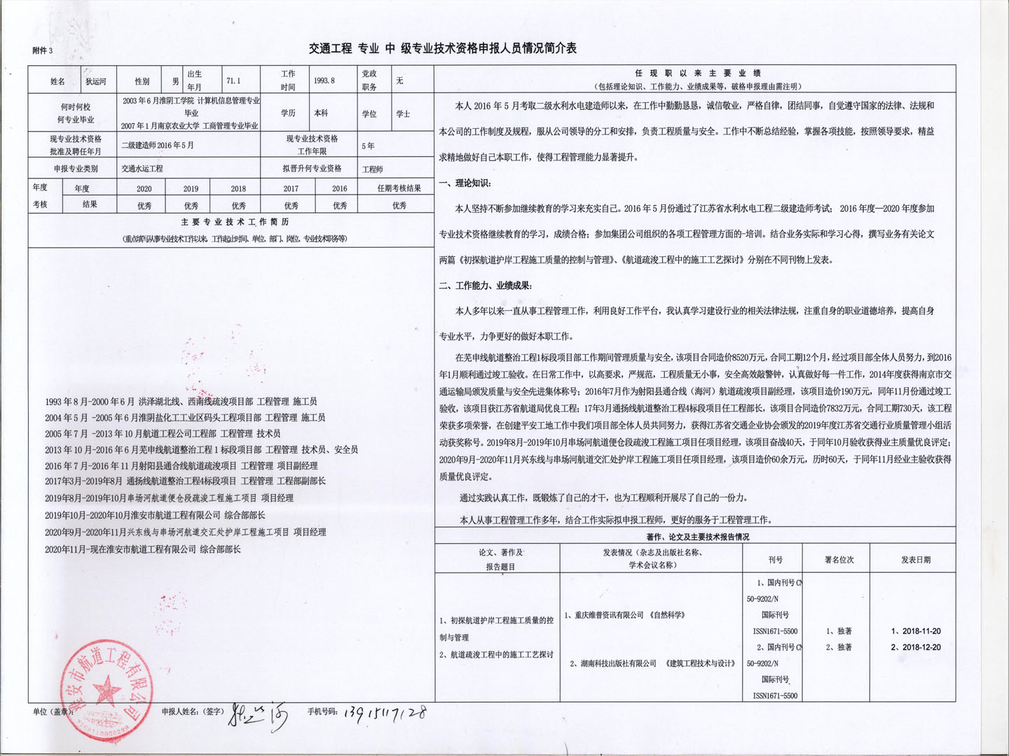 关于周国成等同志申报交通工程类水运工程专业中级工程师的公示